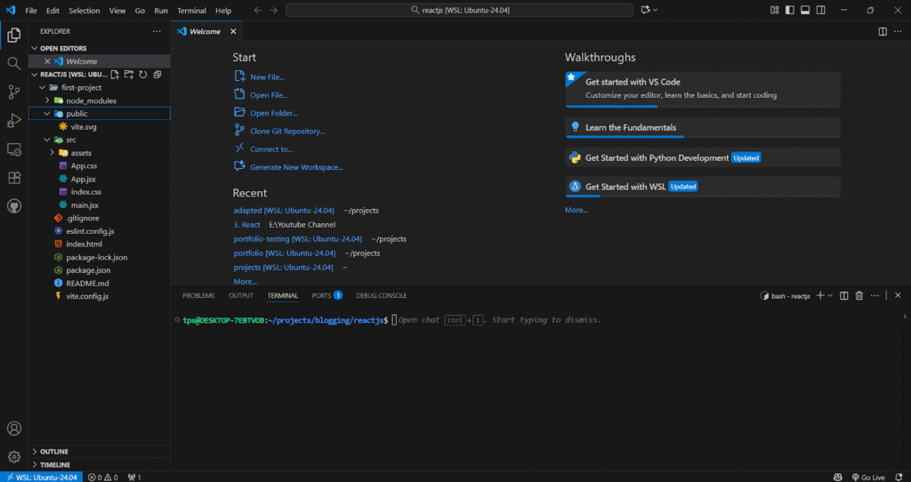Also, open the “first-project” directory in VS Code.